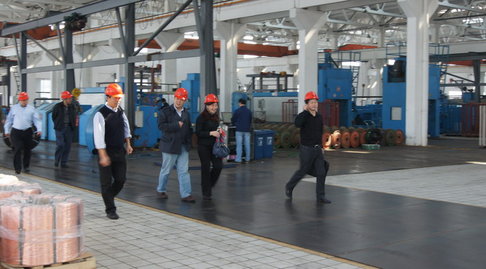 10月22日,上海期貨交易所丁文輝、宜興市人民政府周市長等一行10人訪問江潤銅業,公司總經理駱偉棟熱情接待。 駱總對上海期交所、市領導的再次到來表示熱烈歡迎,詳細介紹了江潤銅業本年度生產經營的基本狀況,對未來發展的展望。期交所丁總監對江潤銅業在多年合作中提供的優質服務表示感謝。 隨后,來訪客人深入生產車間,參觀SCR-7000銅連鑄連軋車間、復合銅線車間、銅絞線車間。江潤銅業先進的裝備,整潔的車間,優美的廠區環境給參觀團一行留下了深刻印象,一致認為符合上海期貨所注冊試驗工廠的標準。